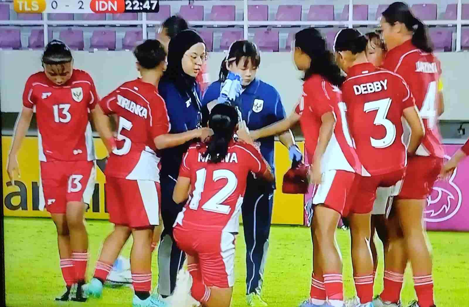 Timor Leste Putri U-16: Viviane Jeronimo Lobato Guterres (GK); Ferelia Sousa Silva Soriano, Nivia Da Silva Do Carmo Ximenes, Nivia Bakhita Dos Santos Gutierres, Natalicia Inacia Da Costa Saldanha; Maria Fatima Borges Da Costa, Devona Trindade Lourdes Da Cunha, Danila Aizi Dos Santos Guterres, Marilia Da Costa Xavier, Cialna Filomena Fernandes Corte-Real; Leliana Lopes Dos Santos Silva.*Imam Kusnin Ahmad*