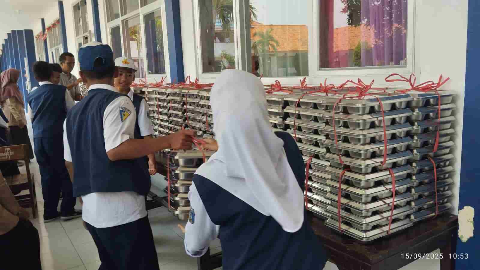 Program pemerintah Makan Bergizi Gratis (MBG) resmi berjalan di SMPN 3 Sindang sebanyak 724 porsi sesuai jumlah siswa. Melalui kerja sama dengan Dapur Sehat Babadan Sindang, distribusi perdana dilaksanakan pada Senin (15/9/2025) pukul 10.40 WIB dan berlangsung lancar untuk seluruh siswa.