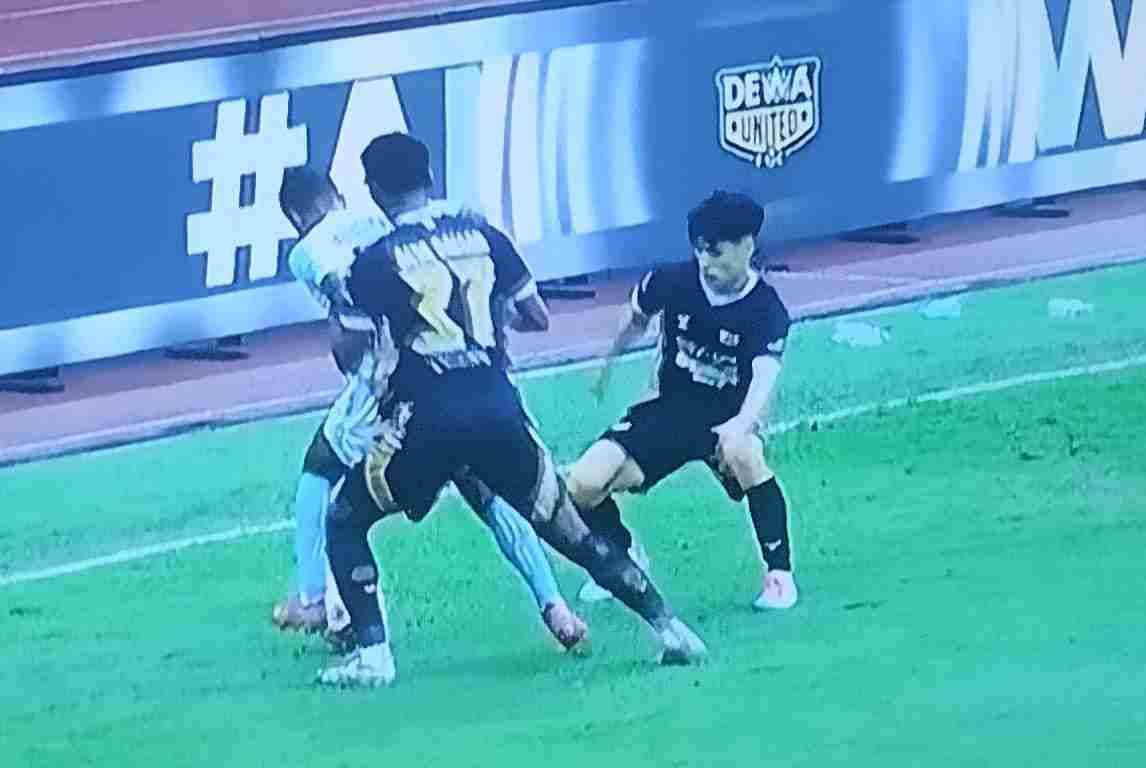 Pada menit ke-6, Ricky Kambuaya, gelandang andalan Dewa United, menerima kartu kuning akibat pelanggaran keras.
