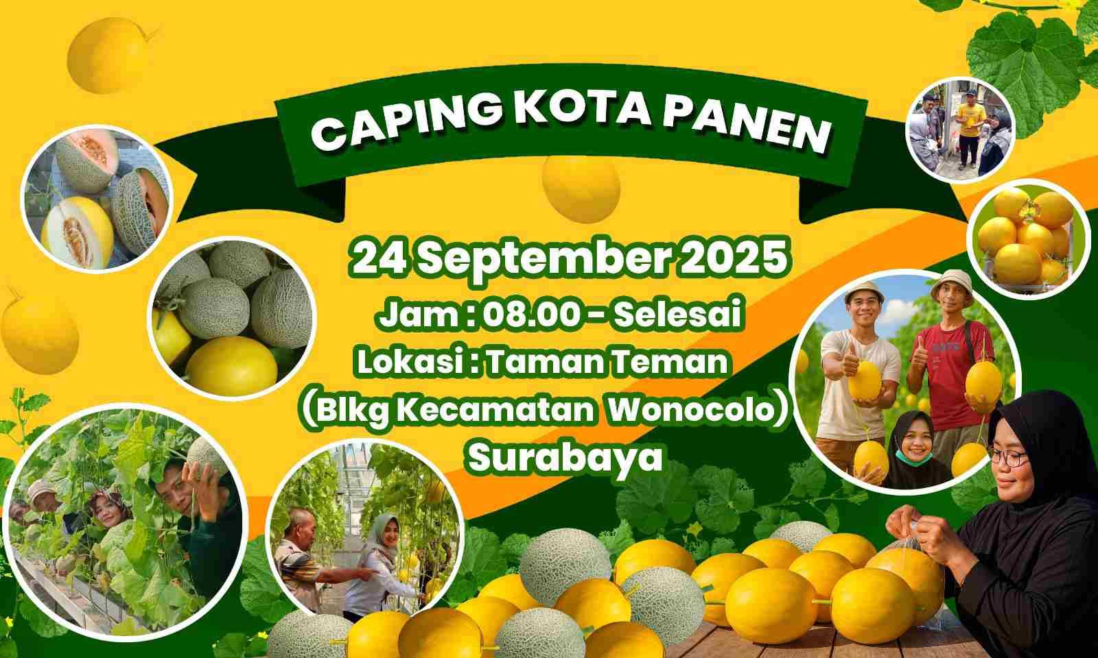 Surabaya- menaramadinah.com-Panen Melon dengan nama Caping Kota Panen digelar pada Rabu, 24 September 2025 besok di Taman Teman Pukul 08.00-selesai di Belakang Kantor Kecamatan Wonocolo Surabaya.