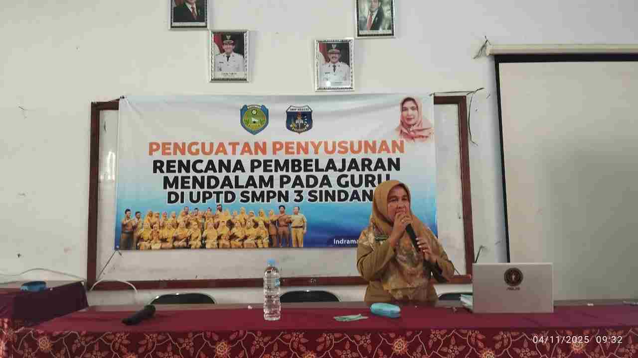 Indramayu, 4 November 2025 – Dalam upaya meningkatkan profesionalisme dan kualitas pembelajaran yang lebih bermakna, UPTD SMPN 3 Sindang menggelar Bimbingan Teknis (Bimtek) Penguatan Penyusunan Rencana Pembelajaran Mendalam pada hari Selasa–Rabu, 4–5 November 2025. Kegiatan ini diikuti oleh seluruh guru dan tenaga kependidikan dengan jumlah peserta sebanyak 60 orang.