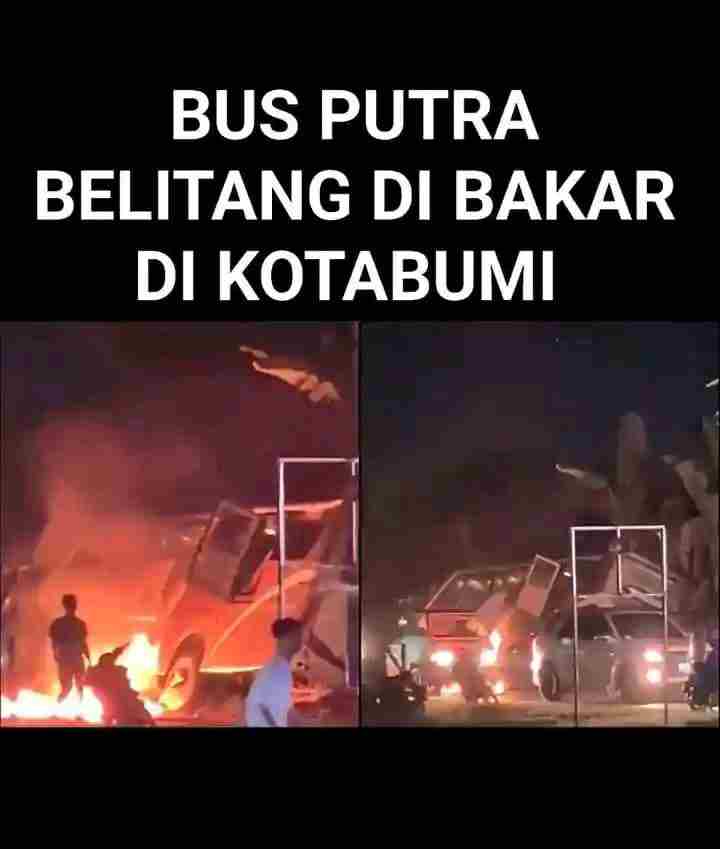 Lampung’Bus antarkota milik PO Putra Belitang dibakar warga usai terlibat kecelakaan lalu lintas dengan sepeda motor di Kecamatan Kotabumi Selatan, Lampung Utara, Jumat (12/12/2025) malam. Peristiwa terjadi sekitar pukul 19.00 WIB dan viral di media sosial.
