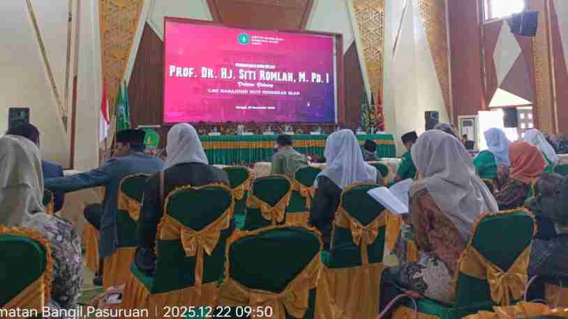 PASURUAN–Suasana khidmat dan penuh syukur menyelimuti Auditorium Institut Agama Islam Nahdlatul Ulama (IAINU) Bangil Pasuruan pada Senin (22/12/2025). Pada hari itu, keluarga besar Ikatan Sarjana Nahdlatul Ulama (ISNU) Kabupaten Pasuruan turut merayakan pengukuhan Prof. Dr. Romlah, M.Pd.I, sebagai Guru Besar dalam bidang Manajemen Mutu Pendidikan Islam — sebuah pencapaian yang menjadi kebanggaan bagi kader NU dan dunia akademik Islam.
