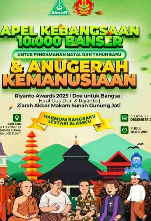 CIREBON– Apel Kebangsaan 10.000 Banser dan pemberian anugerah kemanusiaan Riyanto Awards 2025 digelar hari ini