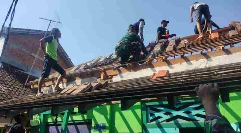Gotong Royong Babinsa dan Warga Bantu Renovasi Rumah Warga Terdampak di Blitar.