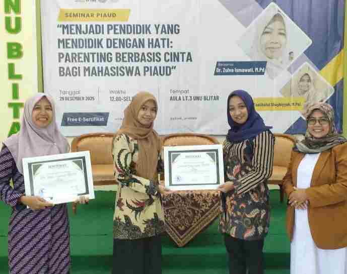 Kegiatan bertajuk “Menjadi Pendidik yang Mendidik dengan Hati: Parenting Berbasis Cinta bagi Mahasiswa PIAUD” yang digelar di Aula Lantai 3 Kampus 1 UNU Blitar, Senin (29/12/2025), membekali mereka dengan fondasi untuk mendidik anak secara utuh—meliputi nilai, emosi, dan akhlak—dengan cara yang penuh kasih dan humanis.