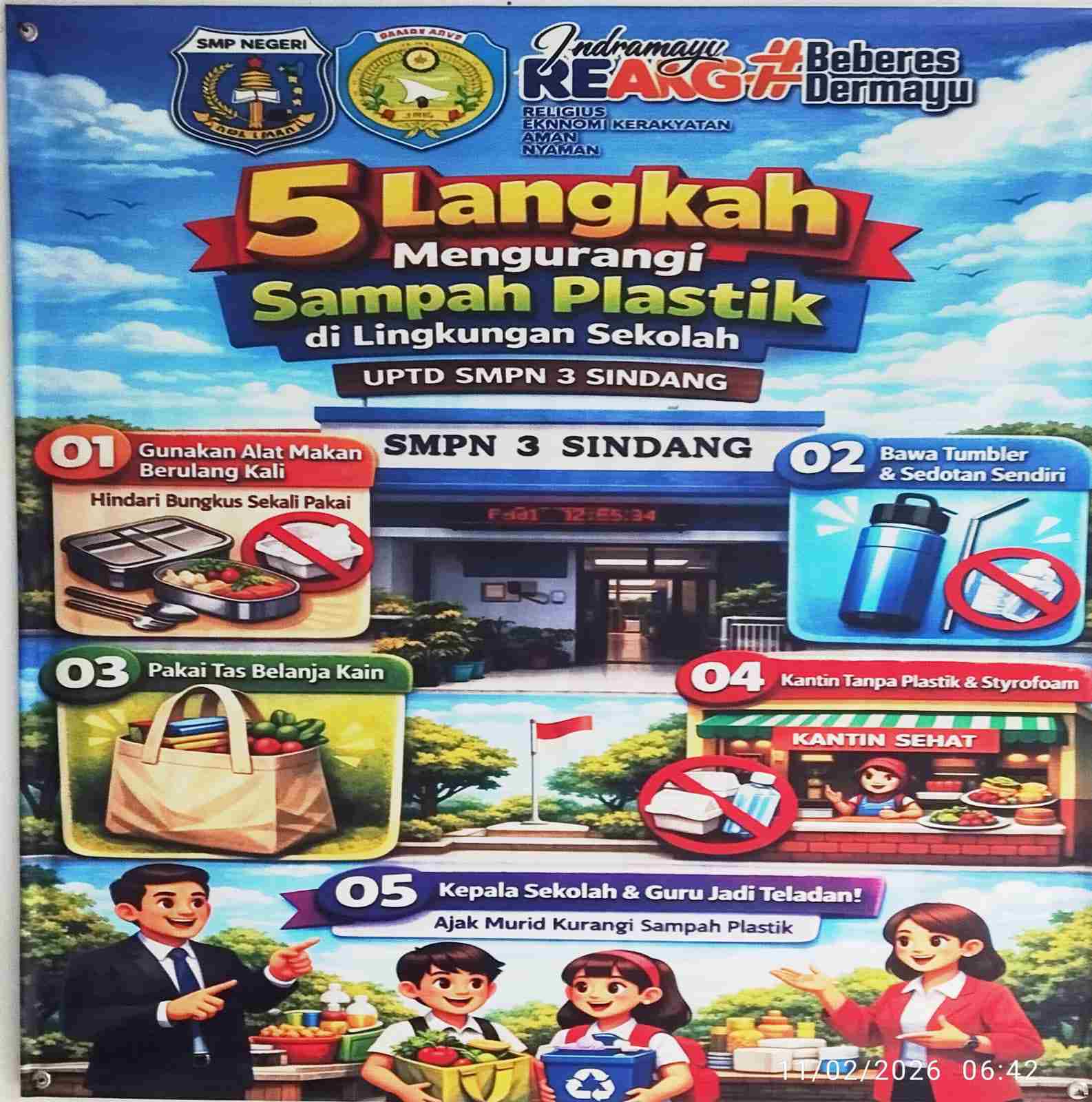 Sebagai bentuk komitmen tersebut, SMPN 3 Sindang memperkuat tiga gerakan utama, yakni GAMBAR (Gerakan Membawa Tumbler), SEBATIK (Sehat Bebas Sampah Plastik), dan LISA (Lihat Sampah Ambil). Ketiga gerakan ini telah dicanangkan sejak Januari 2026 dan menjadi bagian dari pembiasaan karakter siswa dalam kehidupan sehari-hari di lingkungan sekolah.
