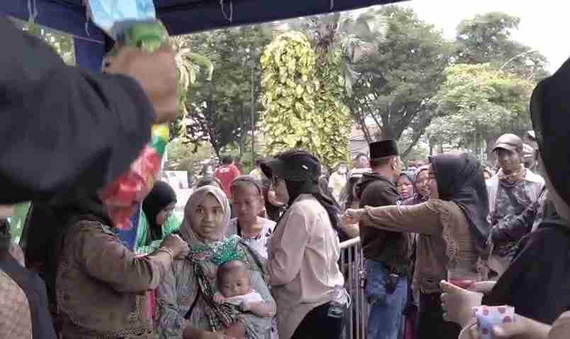 Meskipun cuaca siang itu cukup panas, antusiasme warga tidak surut. Warga tetap bertahan dan dengan penuh semangat menunggu giliran untuk menerima paket sembako.