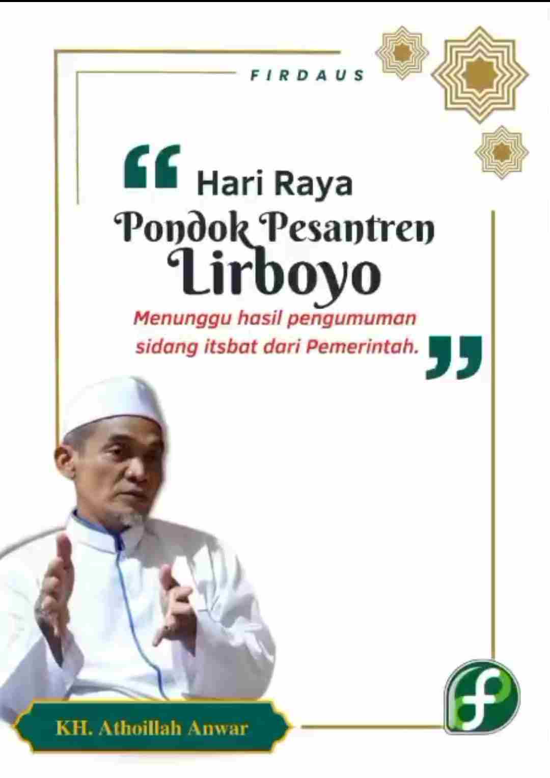 “Jadi Pesantren Lirboyo Kediri, lebarannya menunggu hasil penguman sidang Itsbat dari pemerintah,” ujar KH Ataillah Anwar.