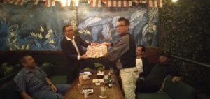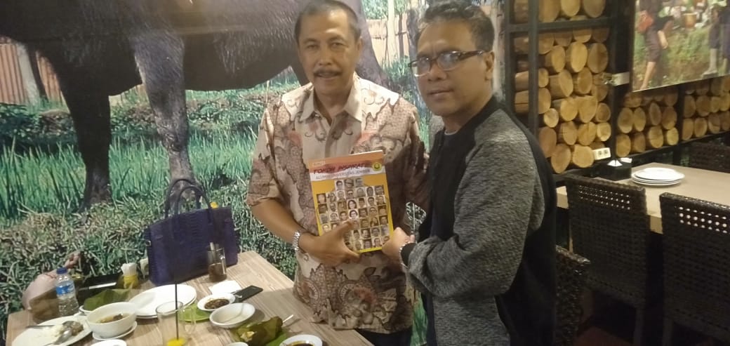 Jakarta-menara madinah.com-Satu persatu menyerahkan buku Tokoh Inspiratif Alumni Unej ke narasumber, Dr. Ikhsan Abdullah SH, MH, direktur eksekutif Indonesia Halal Watch. sekalian dinner di Kafe Cikini Lima. Kedua ke Drs. Hadi SoeSanto, MSi, MM, Direktur BIN. Pung Purwanto, Direktur Koran Sindo. Drs. Sulistyohadi, MM, Direktur Bank Bukopin mengajak dinner di restoran Bumbu Desa.