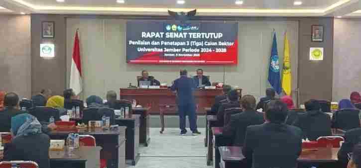 Rapat senat secara tertutup di Kampus Unej  yang dipimpin Ketua Senat Unej Andang Subaharianto menetapkan tiga calon Rektor Unej itu.