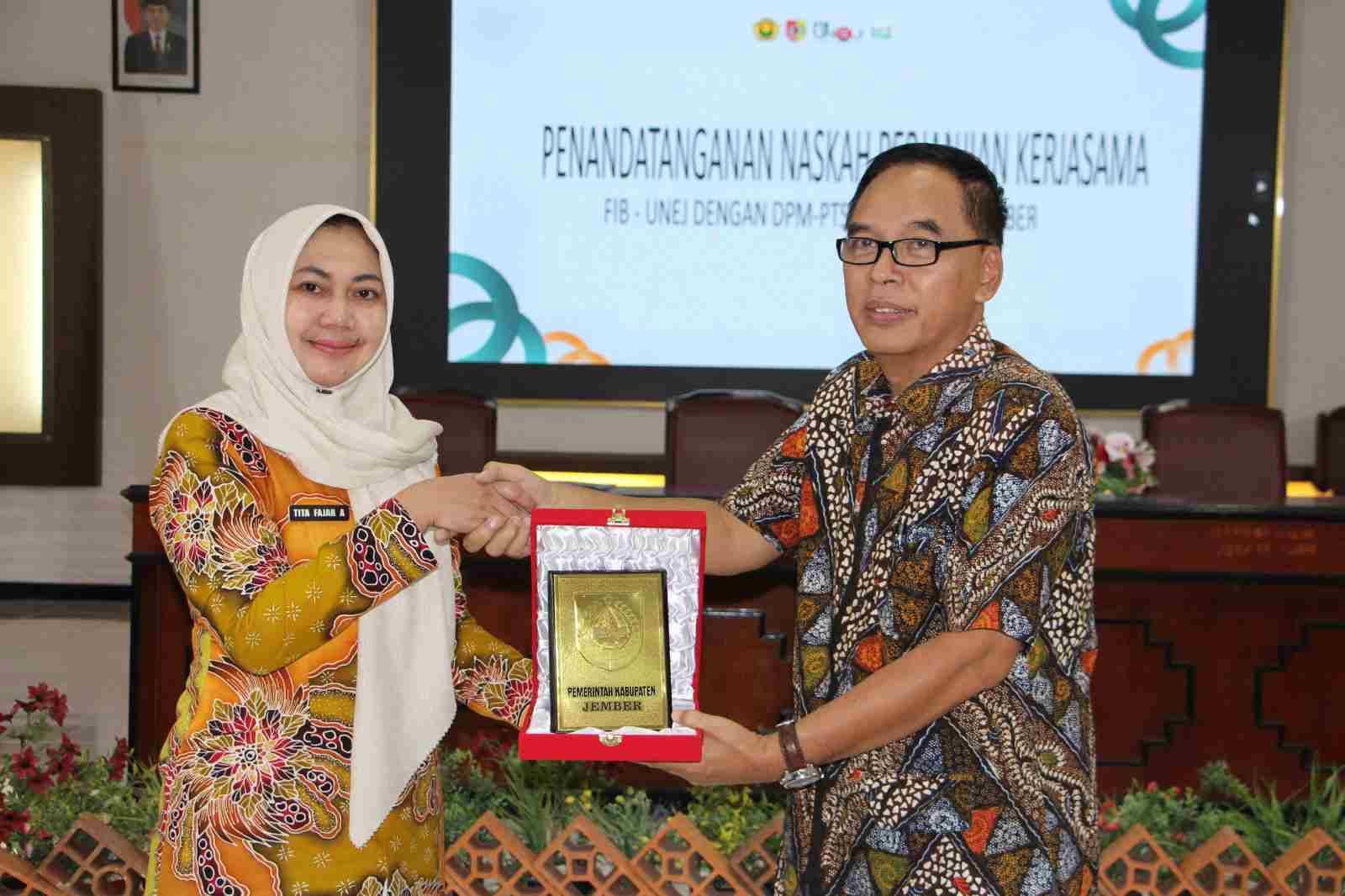 Sementara itu, Tita Fajar A., S.H., M.M., Kepala Dinas Penanaman Modal dan Pelayanan Terpadu Satu Atap, juga memberikan pernyataan mengenai sinergi ini. “Kami memang memiliki program sosialisasi kepada masyarakat. Jadi, kebetulan sekali ada ajakan bersinergi dari FIB Unej ini,” katanya.