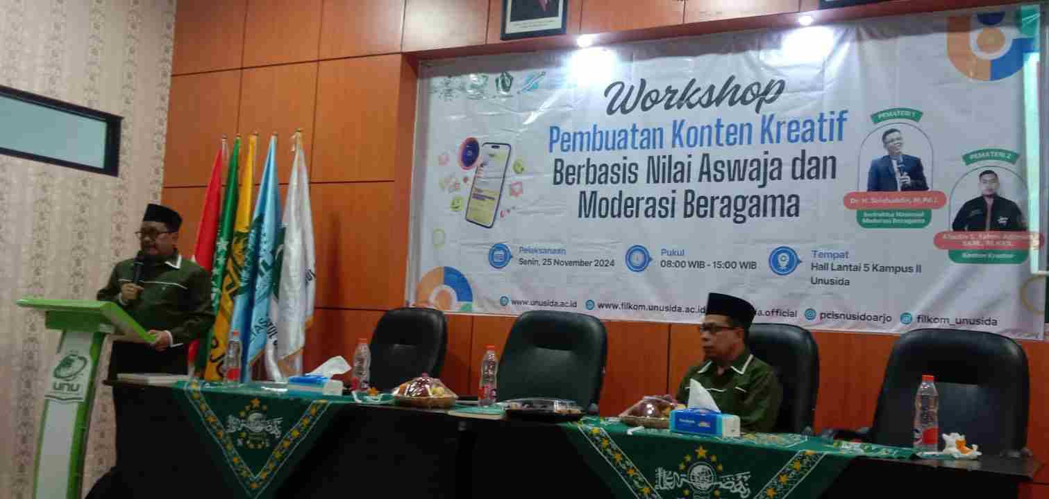 SIDOARJO– Pimpinan Cabang (PC) Ikatan Sarjana Nahdlatul Ulama (ISNU) bersama Fakultas Ilmu Komputer (Filkom) Universitas Nahdlatul Ulama Sidoarjo (Unusida) menggelar workshop dengan mengusung tema ‘Pembuatan Konten Kreatif Berbasis Nilai Aswaja dan Moderasi Beragama’ di Hall Kampus 2 Unusida Lingkar Timur, Sidoarjo. Kegiatan ini dihadiri oleh 75 peserta yang terdiri dari siswa sekolah, mahasiswa, serta anggota ISNU. Dengan antusiasme tinggi terhadap pengembangan konten kreatif yang mengangkat nilai-nilai kebangsaan dan keagamaan, peserta tidak beranjak hingga pukul empat sore.