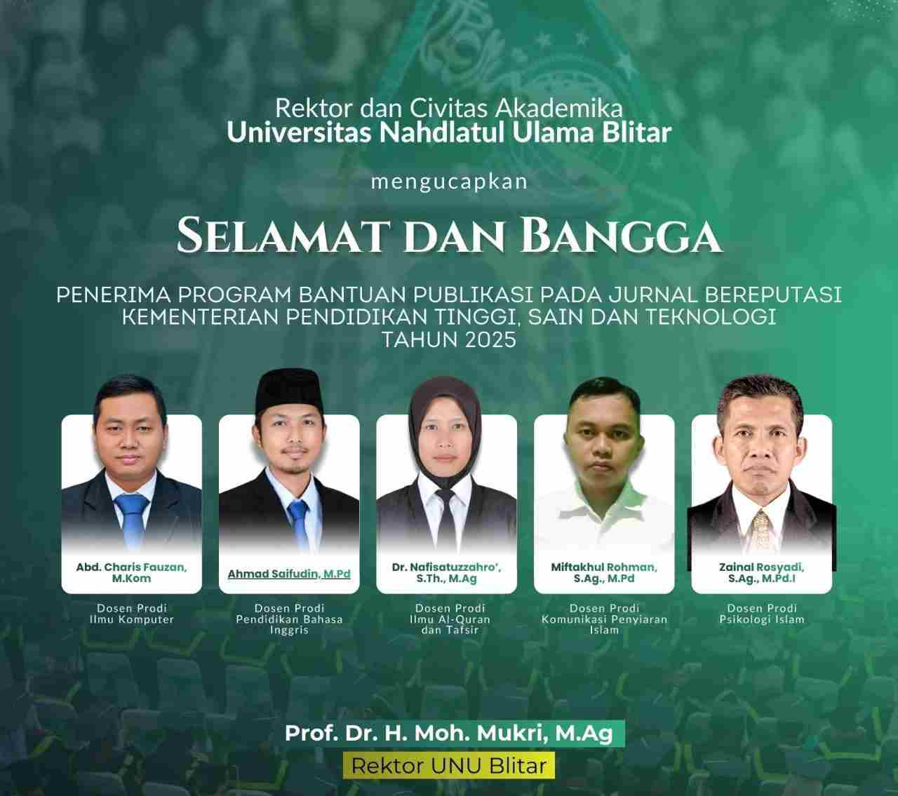 5 Dosen UNU Blitar Terima Bantuan Publikasi Jurnal Bereputasi dari Kemdiktisaintek 2025.